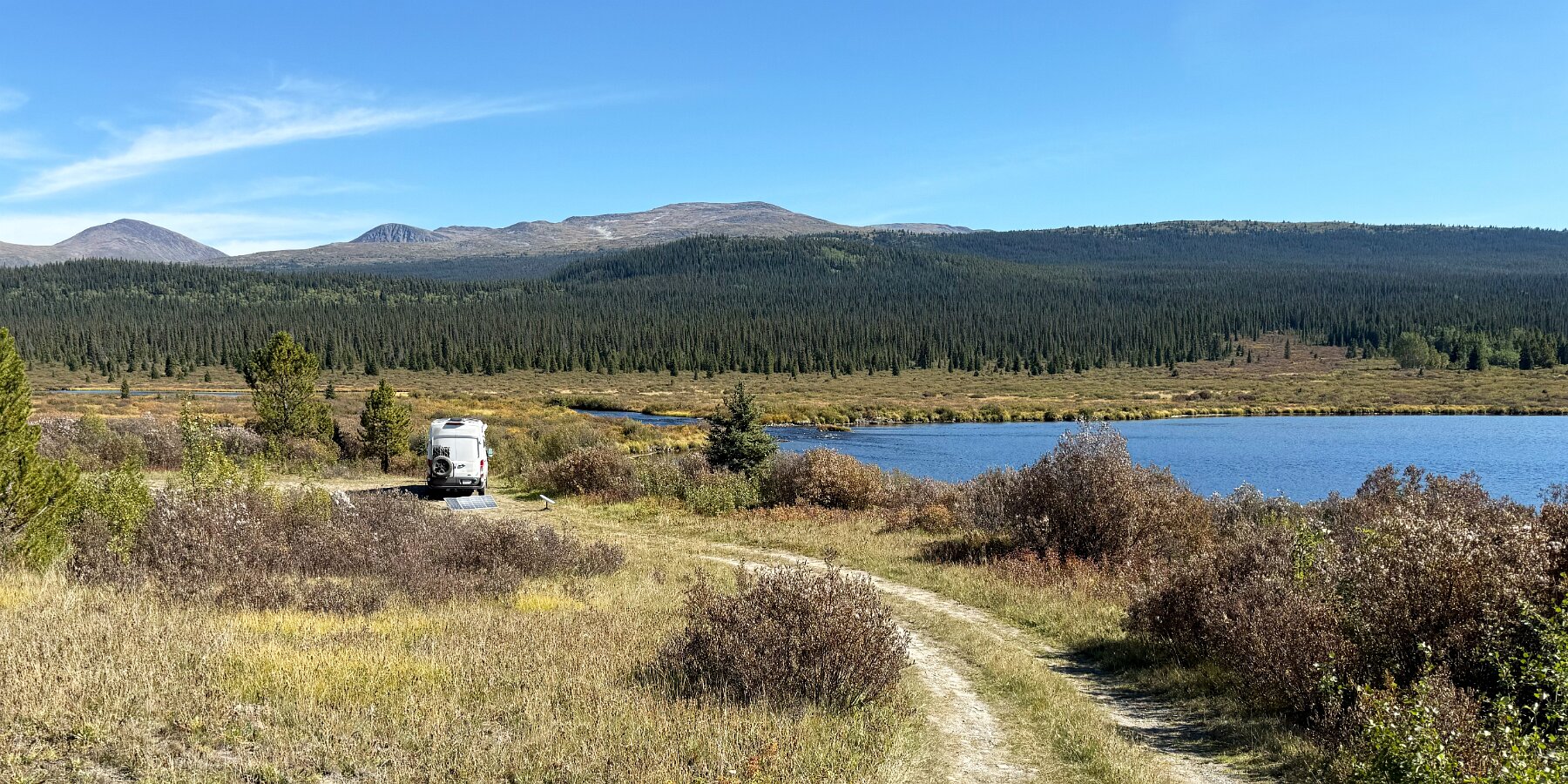 Continuing north along the Cassiar Highway, we eventually joined the Alaska Highway (or ALCAN) to head further west towards the Yukon and Alaska.  Then we took a detour south again into British Columbia to visit Atlin Lake and found a really nice wild camping spot alongside an unnamed lake on Fourth of July Creek near the McDonald Lake Recreation Site.  We stayed two nights, did a little hike towards the nearby mountains but didn’t go very far and had a nice little auroral display one night.