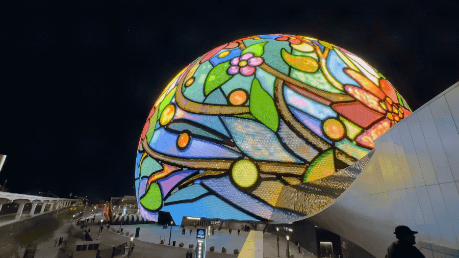 This video highlights some of what went into producing this experience and it was clearly quite the effort but I was also amused to see all the funny compromises needed to fill out the massive spherical display from the original 85-year old movie. In particular, you can see how they had to cut and paste various background characters to fill out the now expansive view – many are looking off in odd directions or stuck in little loops of motion or unnaturally still or even sized disproportionately. There are missing shadows and other compositing difficulties and all of the dialog echoes like sound in a stadium (because I guess that’s how big the space is) but it doesn’t matter – it’s still a fantastic spectacle! And yes, section 306 is the prime viewing area as others have reported – not too low, not too high and everything viewed straight on.