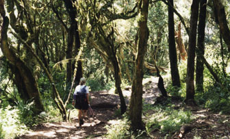 Back down through the giant heather and moss-laden trees...