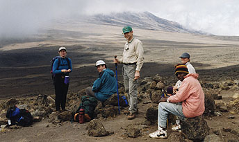 Hanging out at 4500 m on the saddle between Kibo (behind the clouds) and Mawenzi.